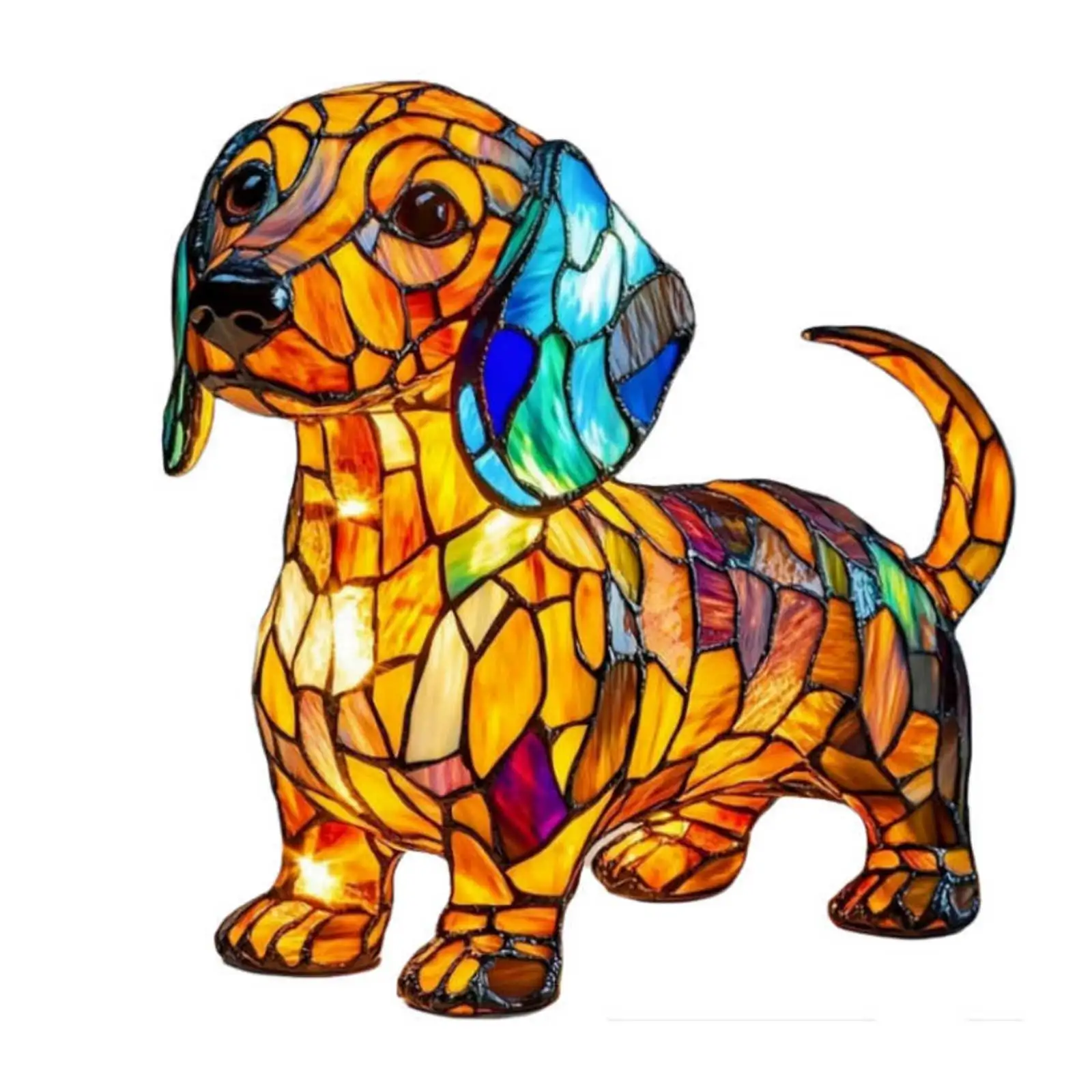 Features: 1.Adorable Pet Theme Design: Featuring realistic shapes inspired by corgi, dachshund, and French bulldog, this cute dog art night light captures the charm of beloved pets. Suit for animal lovers to add fun and companionship to any space. 2.Special Craftsmanship & Materials: Made with stained-glass style resin, every resin tabletop light displays intricate textures and a sense of vintage artistry. Sturdy and tactile, it's both a decorative and long-lasting accent for your desk. 3.Practical Tabletop Night Light: This stained puppy bedside lamp emits a soft, gentle glow that's easy on the eyes, ideal for nighttime use or creating relaxing ambiance. Convenient illumination for late-night needs or cozy evenings. 4.Vintage Decorative Appeal: The retro animal design fits seamlessly into a wide range of home decor styles. These pet dog table lamps elevate the atmosphere in bedrooms, living rooms, or any corner needing a whimsical touch. 5.Versatile Multi-Scene Use: Functional as both a night light and a unique decor piece, the lovely decorative nightstand lamp suits personal use or makes a thoughtful gift for pet lovers. Adaptable for various occasions and settings. Specification: Origin: Mainland China Material: Resin Product size: 170.00x100.00x100.00mm/6.69x3.94x3.94inch